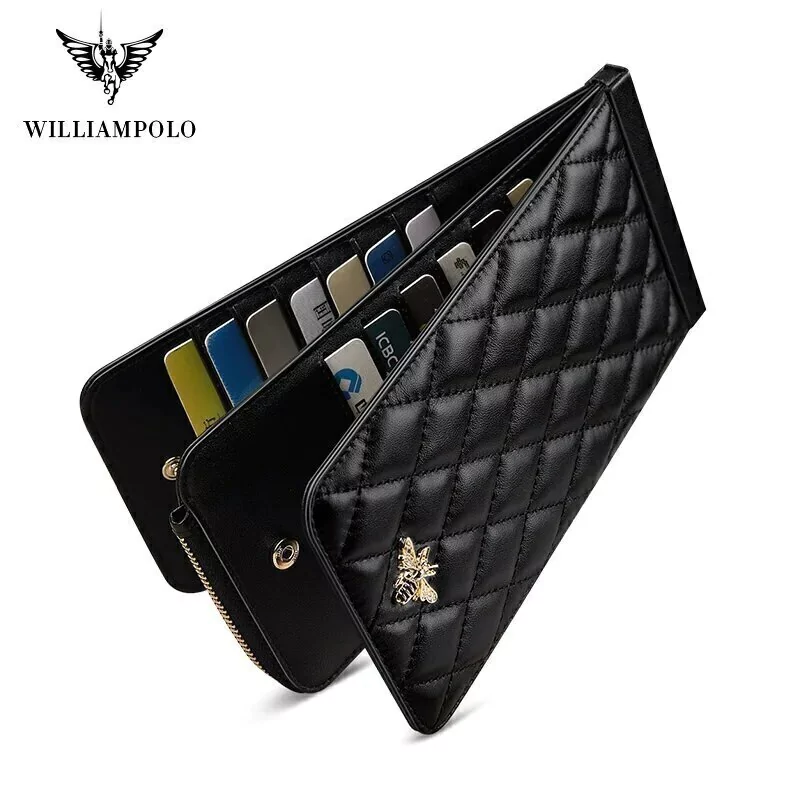 A Elegance Hive é mais do que apenas uma declaração de estilo. É uma companheira prática para o dia a dia, organizando sua vida com elegância. Os compartimentos bem pensados, incluindo um bolso interno de armazenamento, bolso para celular, compartimento com zíper, bolso para moedas, porta-notas, porta-fotos e suporte para cartões, garantem que tudo tenha um lugar certo. A funcionalidade encontra a moda nesta carteira de design requintado, proporcionando não apenas uma estética encantadora, mas também soluções de organização intuitiva. Com dimensões ideais, ela se encaixa perfeitamente em sua bolsa ou pode ser carregada à mão com graça. Feita na China sob os rigorosos padrões de qualidade da marca italiana William Polo, cada carteira é uma promessa de qualidade e estilo inigualáveis.