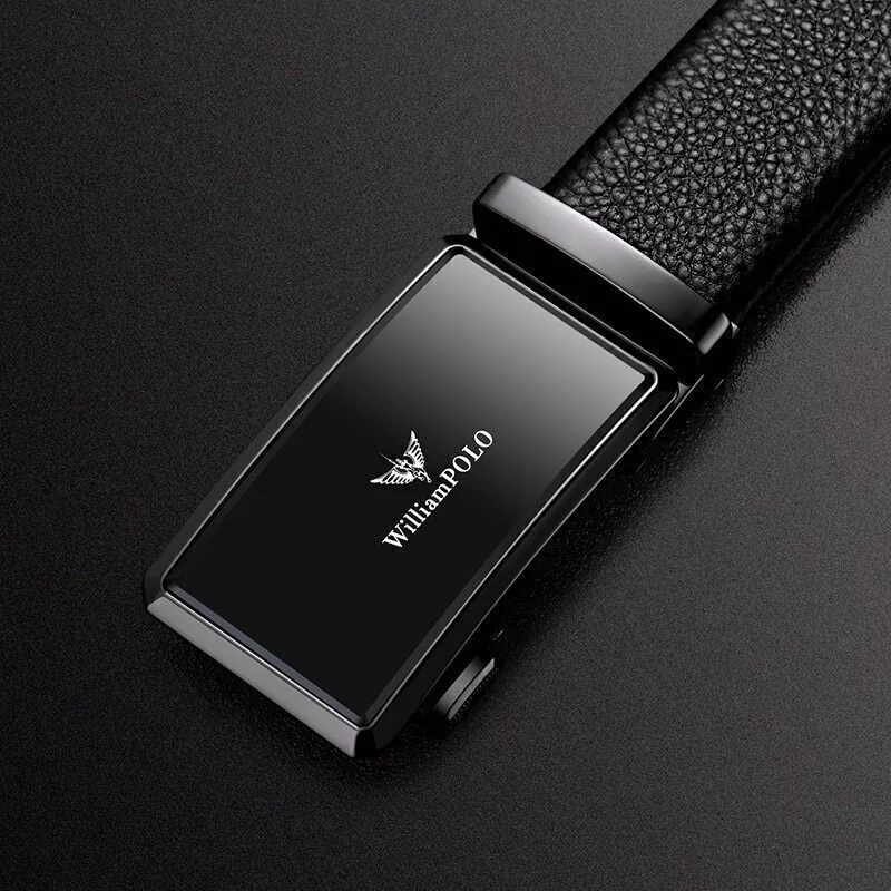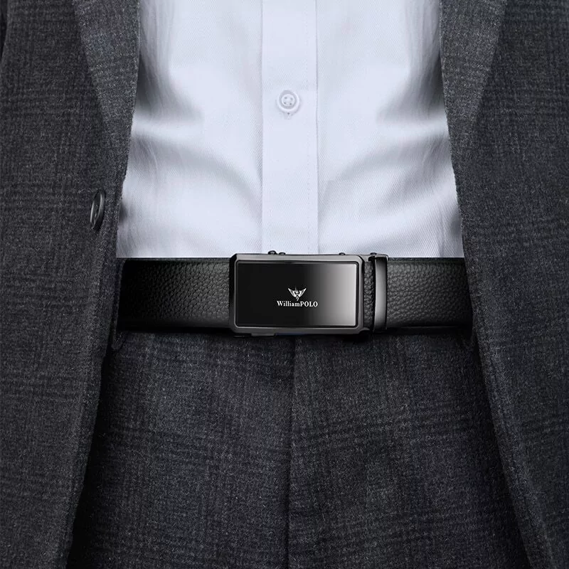 O cinto "Executive Edge" é especialmente concebido para o homem de negócios contemporâneo que busca um acessório elegante e durável. A fivela automática, lisa e fosca, embelezada com a marca William Polo, acrescenta um toque de distinção ao design global. As bordas em aço, disponíveis nas cores preto ou dourado, complementam a estética moderna do cinto.